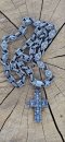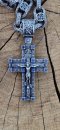 Крест обрамляет молитва. Это слова из Канона Кресту Господню: «Кресте всесильне, апостолов похвала, преподобных утверждение и верных знамение, иерархов и мучеников слава, победа и утверждение всех хвалящих тя. Кресте Честный, хранитель души и тела буди ми, образом своим бесы низлагая, враги отгоняя, страсти упражняя, и благословение даруя ми, и жизнь и силу, содействием Святаго Духа, и честными Пречистыя мольбами».