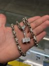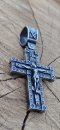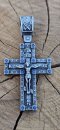 Изображено на кресте: Распятие Христово. Святая Троица. Святой Николай Чудотворец. Мученик Трифон. Три святителя. Икона Божией Матери "Толгская". Ангел Хранитель. Преподобный Сергий Радонежский. Святой Спиридон Тримифунский.1. Размер: 7 х 4 мм